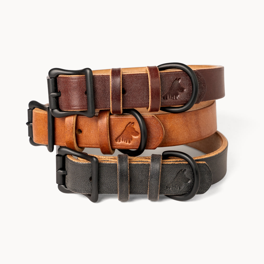 Using the same J & FJ Baker leather as our belts, our collars are built to last a lifetime. Each comes with the option to personalize with a monogram unique to your dog.