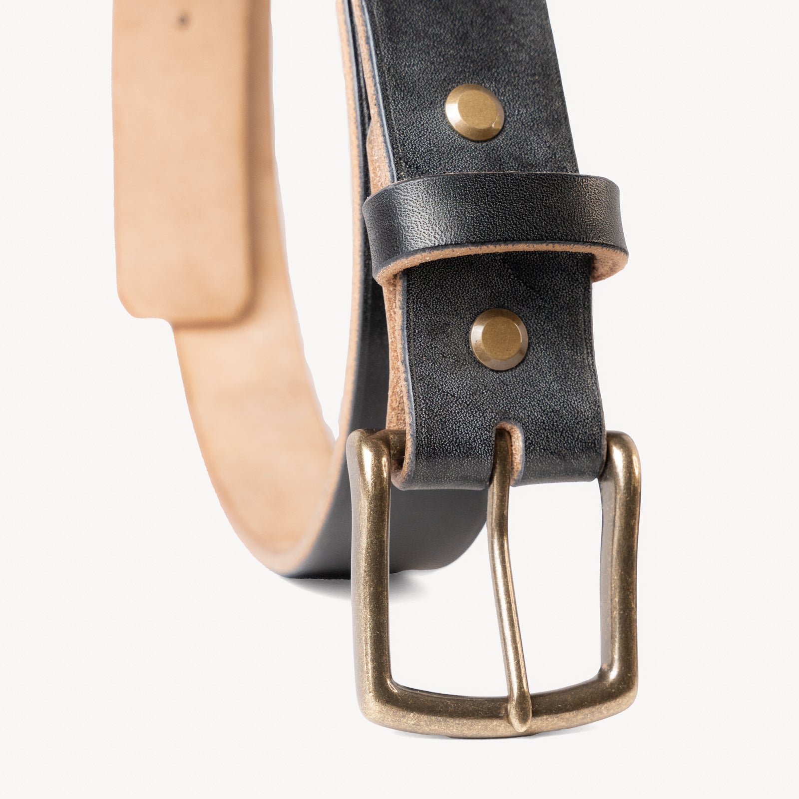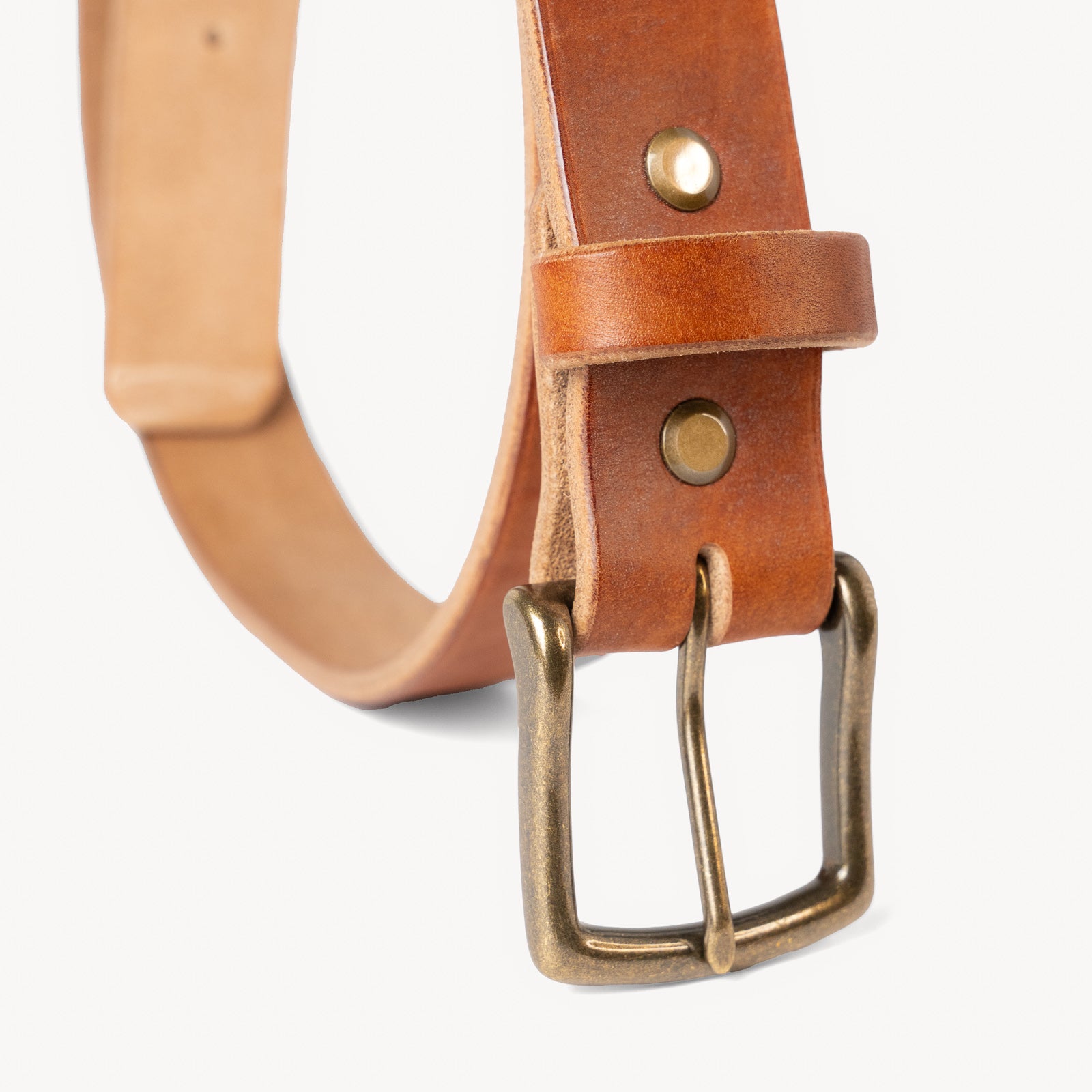 Made with thick, full grain oak tanned leather sourced from the last remaining Oak-bark tannery, J & FJ Baker. Solid brass hardware is attached using chicago screws for guaranteed hold. The Heritage belt will last your entire life, and only grow more beautiful with age.